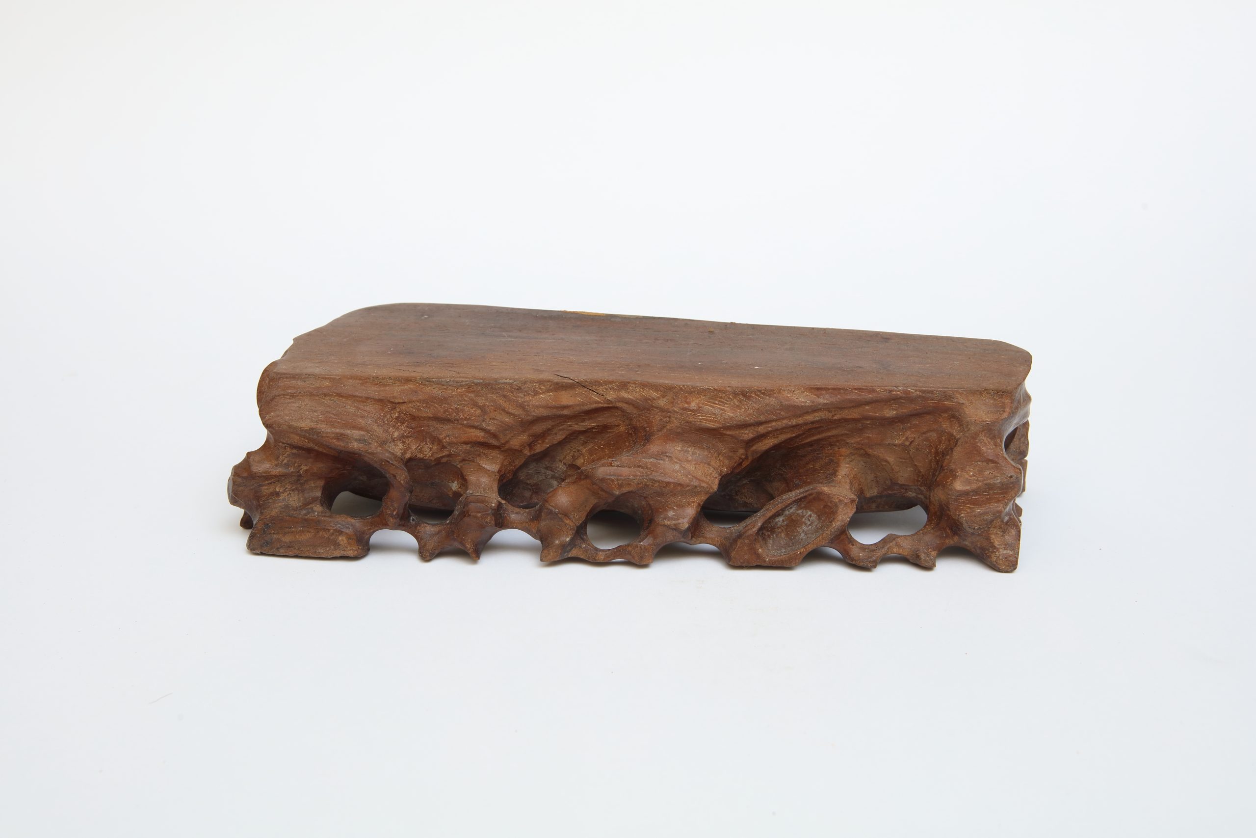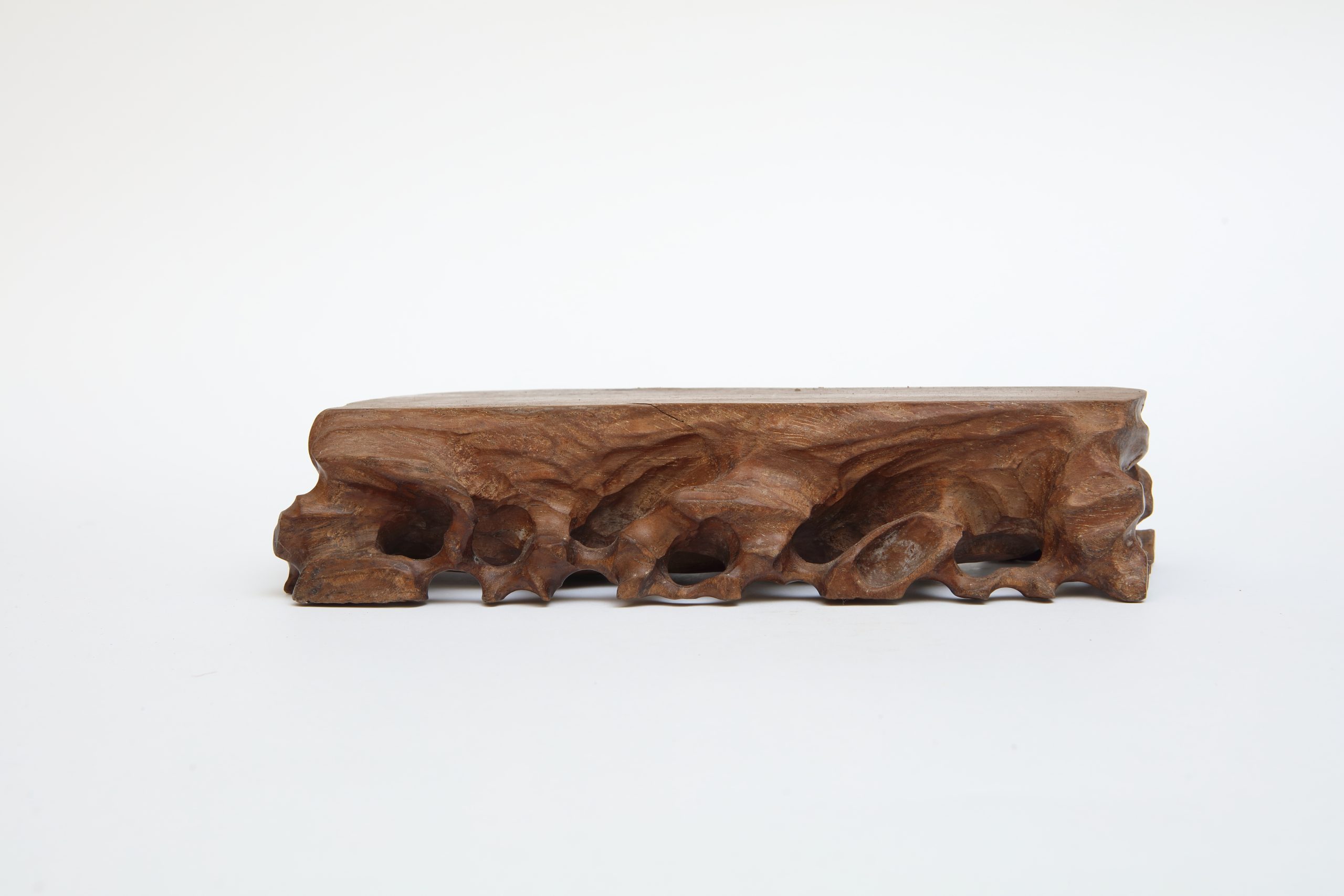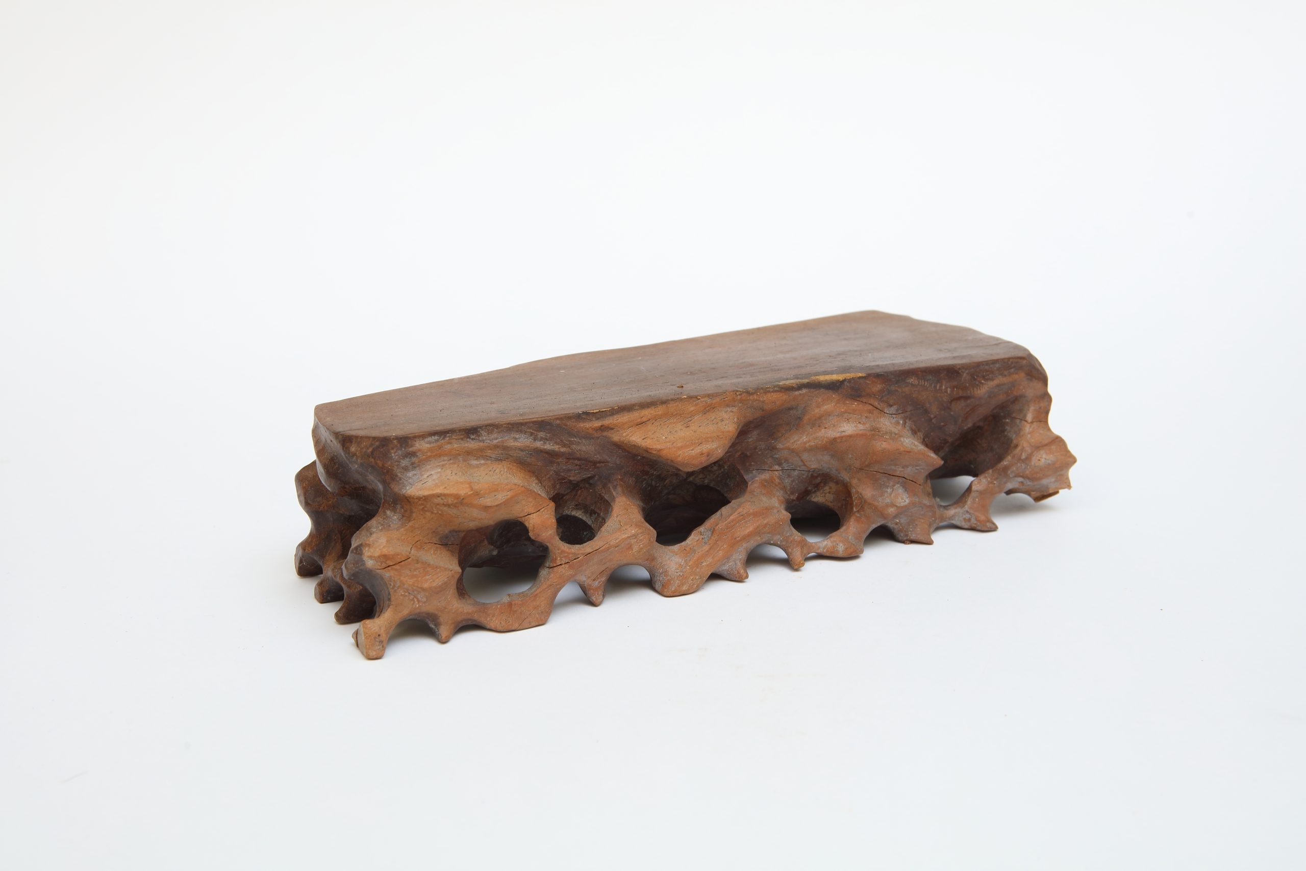 其雕刻不求對稱,孔洞與邊緣保留粗礪,