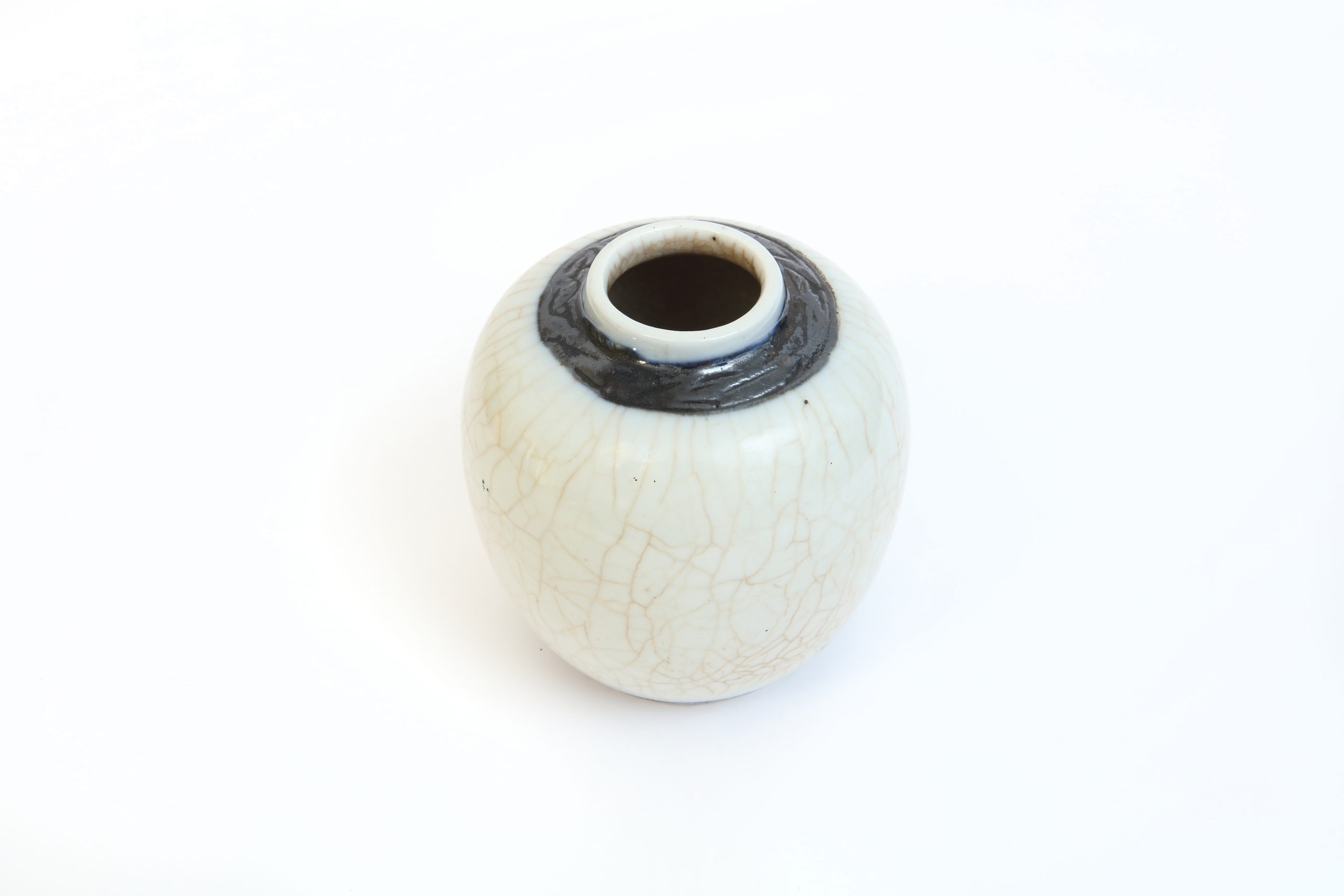 口緣微微內斂,一道釉色的轉折在此停住。釉層於高溫中流動,在邊界處略顯積聚,形成一圈深灰近黑的過渡帶,如同火焰曾經停駐的痕跡。