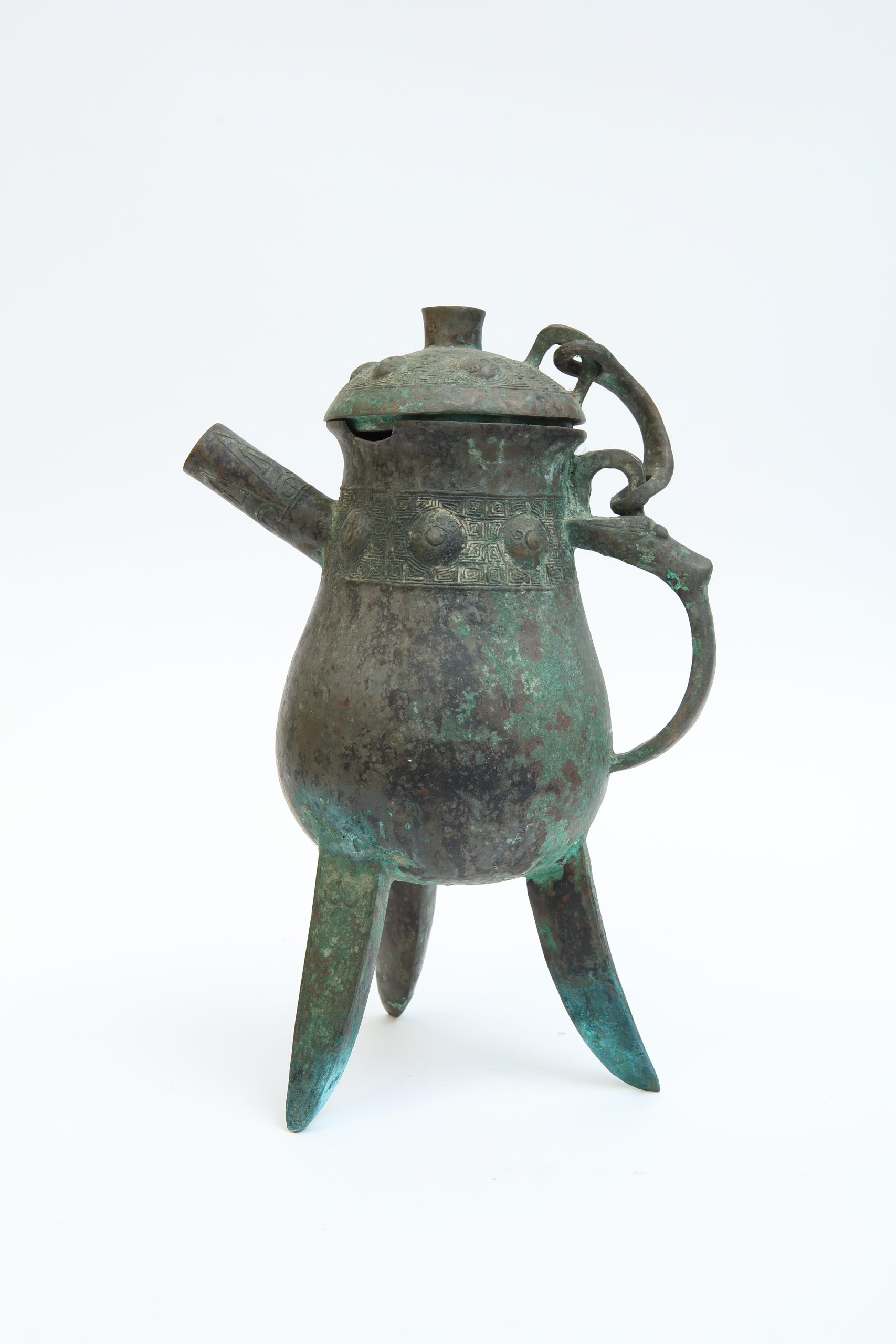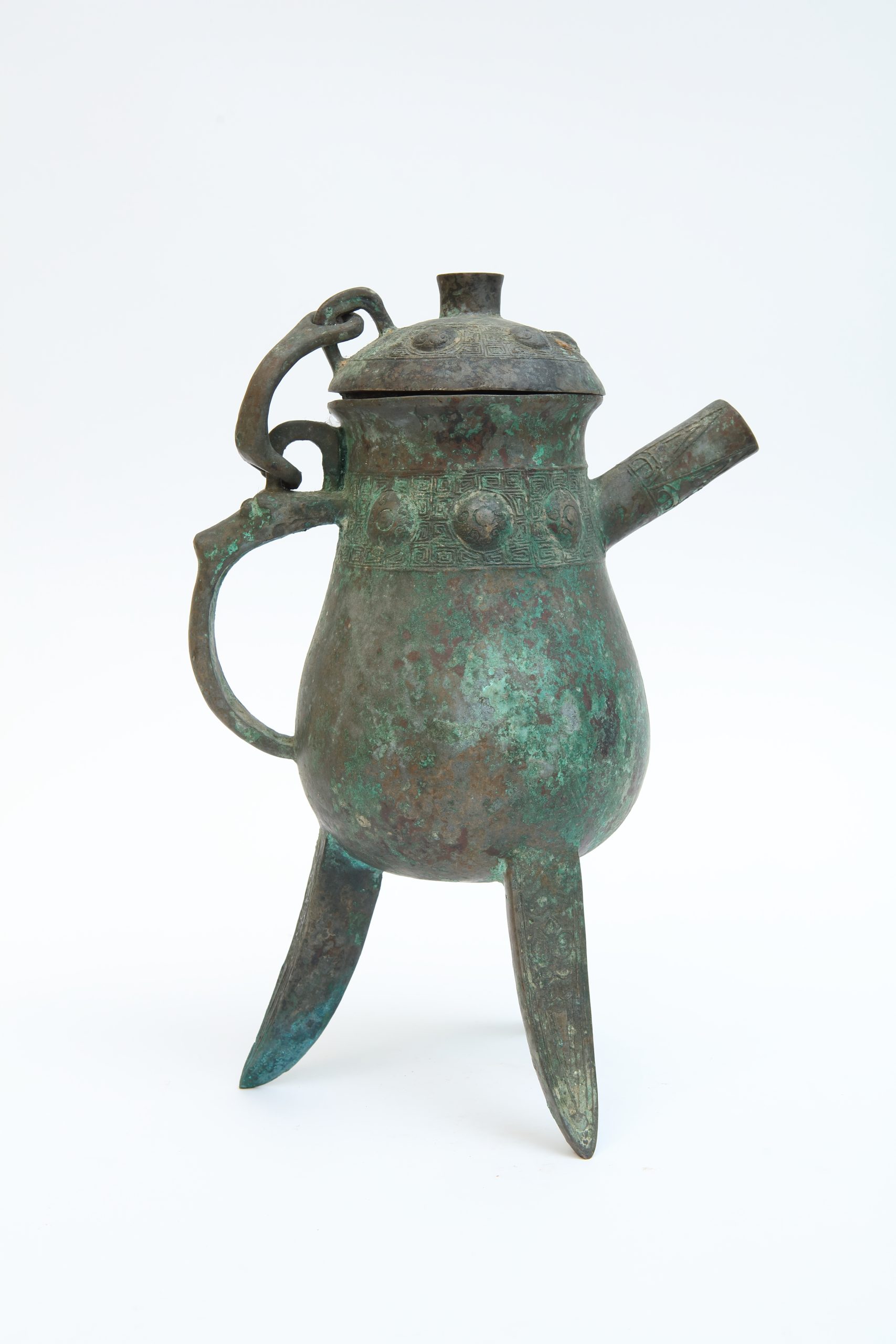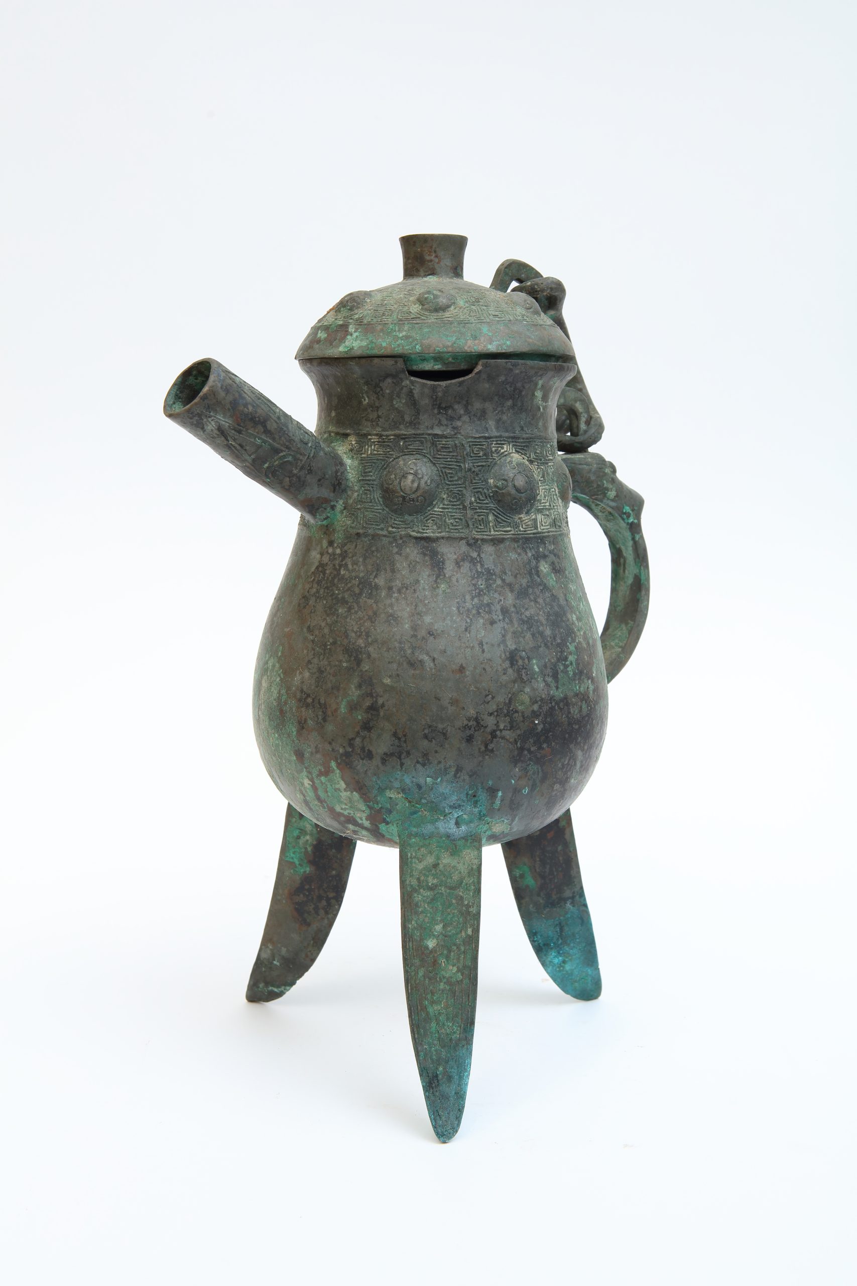 它或許不再置於宗廟祭典之中,卻在當代空間裡承載一份對古意的想像。當視線沿著流口滑落至三足,彷彿觸及遠古火光與酒香的餘溫。這不僅是一件仿古器物,更是一種情感的投射。